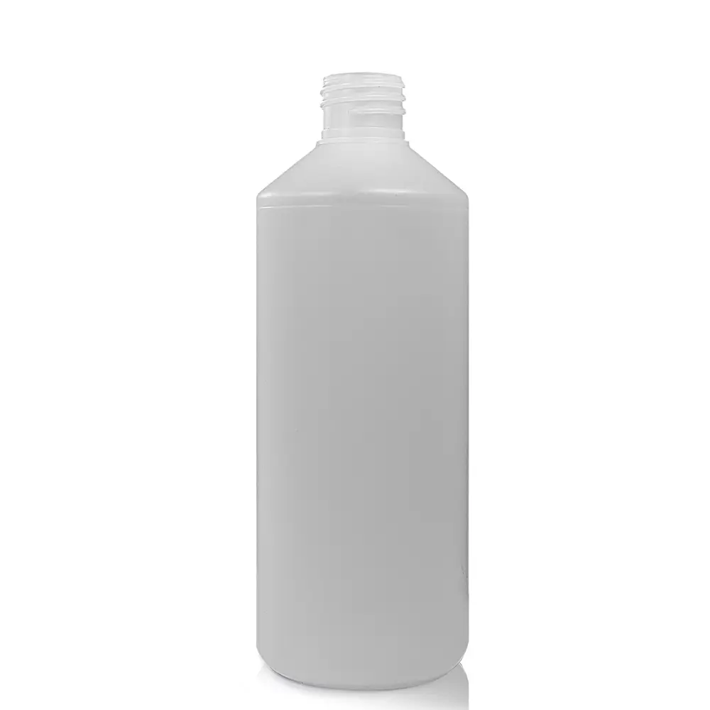 – 500ml natural HDPE plastic round bottle with 28mm screw cap